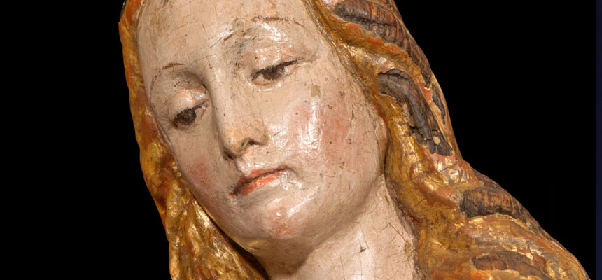 Magnífico grupo escultórico “Santa Ana, la Virgen y el Niño”. Gótico de Amberes, segunda mitad del siglo XV. Madera tallada, policromada y dorada. Medidas: 60 × 35 × 19 cm. ... VER LOTE