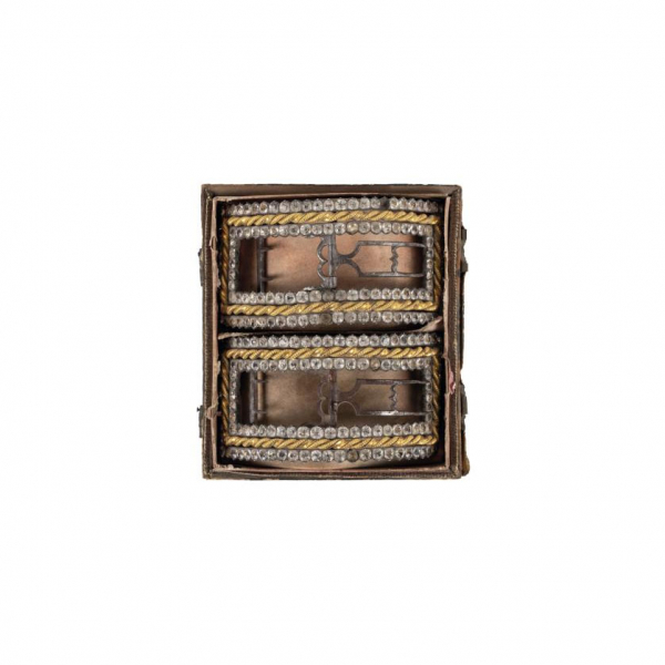Pareja de hebillas para zapato en plata, S. XVIII. Realizadas en plata, sin punzón visible, metal dorado y strass.