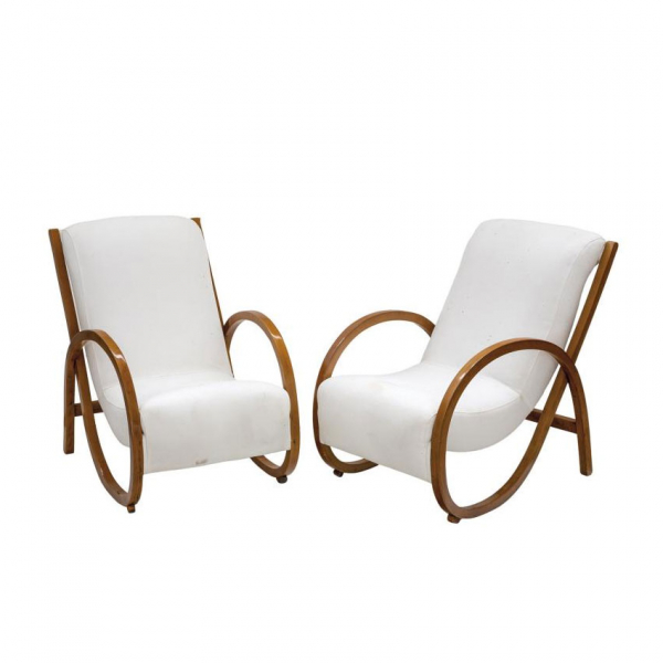 Pareja de butacas midcentury de estilo Art Decó realizadas en madera tallada y torneada.
