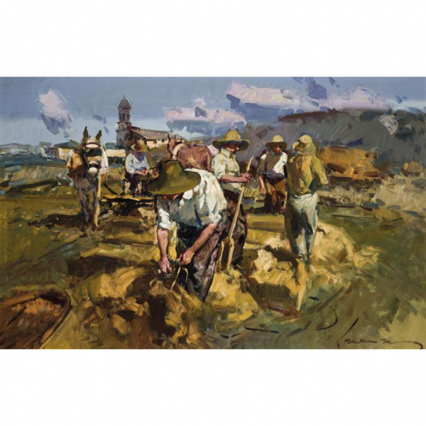 "La Siega". Óleo sobre lienzo. Firmado en el ángulo inferior derecho.