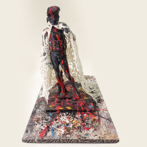 Miguel Robledo Cimbrón (Mora de Rubielos, Teruel 1956). "King over Kings" (2021). Escultura de resina y tela rígida pintada a mano. Firmada y fechada 21 en la base de madera.