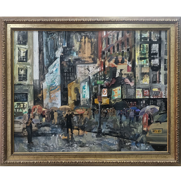Antoni Vives Fierro (Barcelona, 1940). Título: Paraigües (2009). Descripción: óleo y collage sobre lienzo firmado y fechado 2009 en el ángulo inferior derecho.