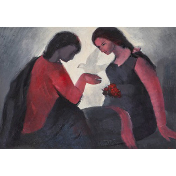 JOSÉ BARCELÓ ALBADALEJO (Cartagena, Murcia 1923 - Bilbao 2001) "Jóvenes con paloma" Firmado: José Barceló 81 Óleo / Lienzo
