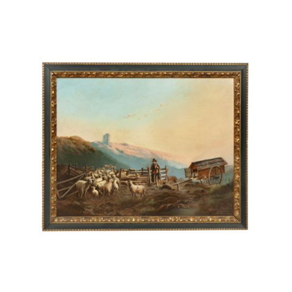 (1847-1923) "Paisaje con pastor y ovejas" Firmado: Adela Ortiz 1886