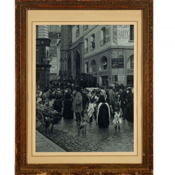 Mercado del Saint Suplice de París, grisalla, Circulo de Jean Georges Béraud (1849-1936, France).
