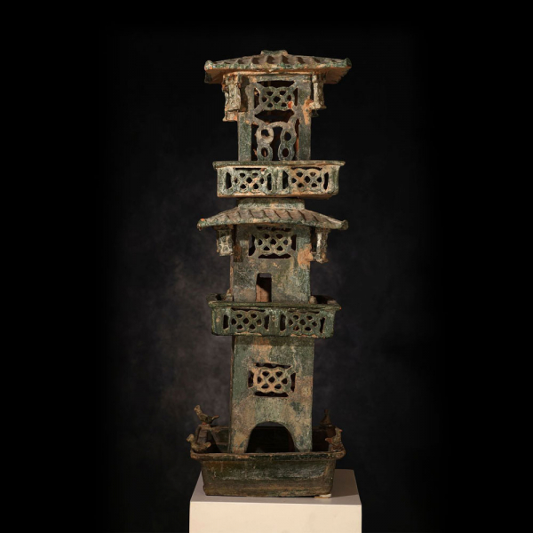 Excepcional gran pagoda china Tang en terracota, Periodo Han (202 a.C. - 220 d.C.).