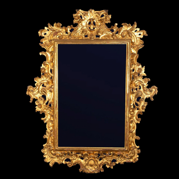 Madera tallada y dorada. Medidas: 135 × 103 × 5,5 cm (total); 81 × 52 cm (luz).