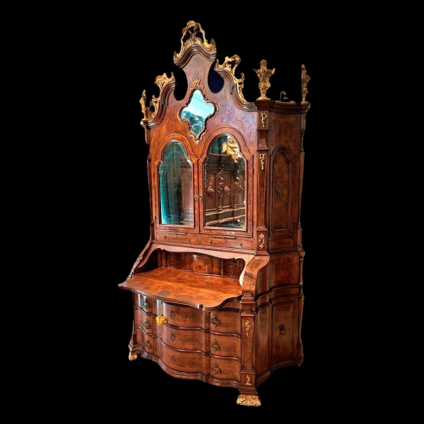 Madera tallada de brezo de nogal, enriquecida con tallas de madera dorada en oro puro de la artesanía veneciana del siglo XIX.