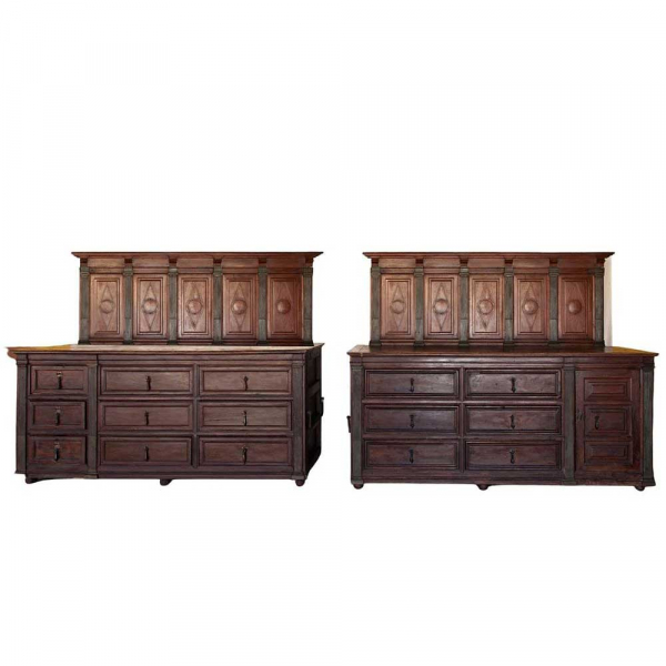 Gran Pareja de Cajoneras Eclesiásticas en madera y forja, Toledo o Salamanca, escuela española del siglo XVII.