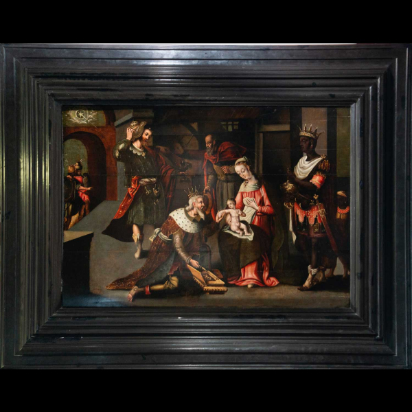 Gran Óleo sobre tabla representando la Adoración de Reyes, escuela Ítalo Flamenca del siglo XVI.