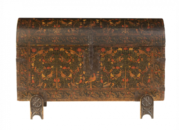 Y dentro de la categoría de MUEBLES Y ARTES DECORATIVAS de Alcalá, destacaremos las siguientes piezas: una cómoda Carlos IV blasonada de madera de palosanto, limoncillo y maderas frutales. Trabajo mallorquín, finales del S. XVIII (salida 6.000 €); un juego de servir blasonado en plata, Londres, varias épocas y plateros como Robert Sharp (salida 11.000 €); un vaso decorado por PABLO PICASSO (Málaga, 1881 - Mougins, 1973) "Chouette aux traits" (A.R. 121), realizado en loza blanca con decoración en óxidos, grabado al cuchillo, sobre esmalte blanco, marrón y negro (salida 8.000 €); un tapiz barroco en lana, de la serie de Marco Antonio y Cleopatra, Trabajo flamenco, S. XVII (salida 9.000 €); y un baúl Novohispano S. XVIII, con tapa de medio cañón de madera laqueada y pintada con flores y pájaros (salida 10.000 €).