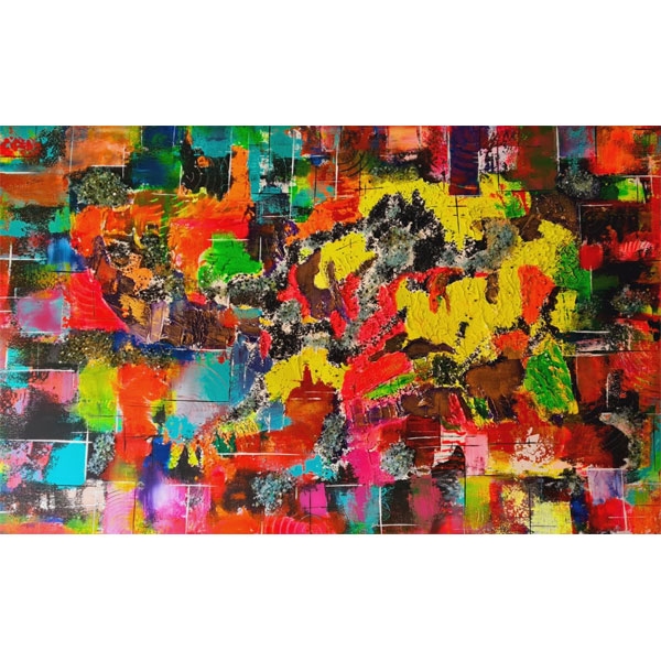 La obra está realizada con pinturas acrílicas,gesso y cristales brillantes.