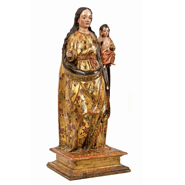 Escultura de madera tallada , dorada y policromada, de escuela ecuatoriana, hacia 1600.