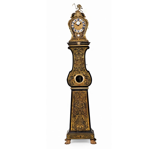 INTERESANTE RELOJ DE CAJA ALTA CON MARQUETERÍA BOULLÉ, FRANCIA, S.XVIII.
