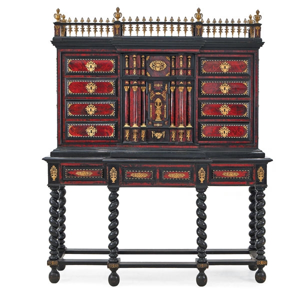 BARGUEÑO HISPANO-FLAMENCO EN MADERA EBONIZADA, BRONCES Y CAREY, S. XIX.