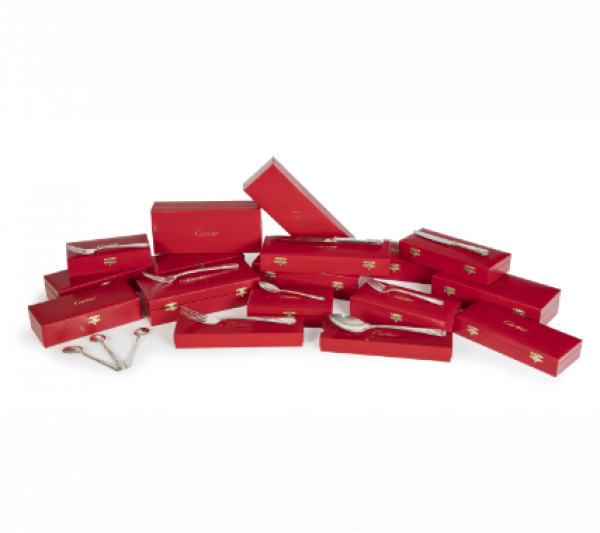 Cubertería de la “Maison de Louis Cartier” en plata y plata dorada. Con la inicial "S" grabada bajo corona condal.