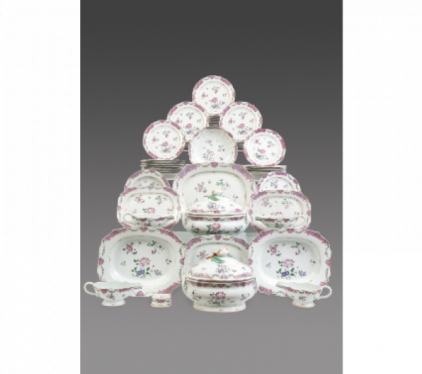 Vajilla de porcelana de Compañía de Indias con esmaltes de la familia rosa. Procedente de Don Pedro Antonio de Ceballos Cortés y Calderón*.