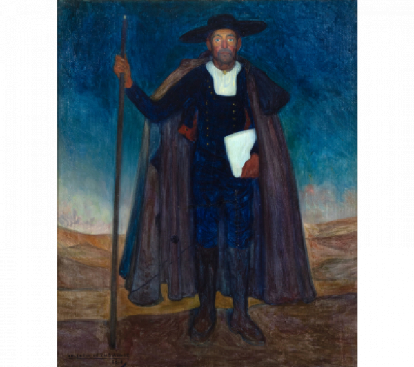 La obra de El Alcalde, representa todo lo que Valentín Zubiaurre quiso mostrar en su pintura. La figura, de una gran solidez, hierática, con carácter que se combinaban con un perfecto fondo de paisaje donde vemos su dominio del color que tiñe de un cierto simbolismo y de un espíritu reflexivo y melancólico.