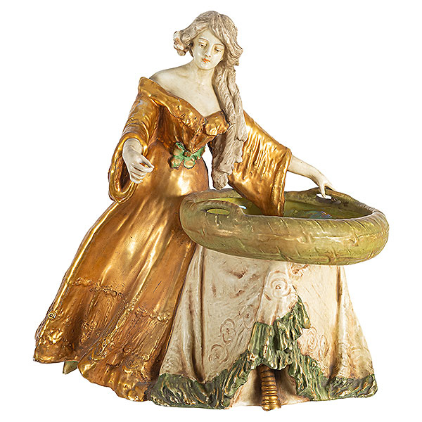Dama con cesta. Escultura Jugendstil en porcelana Amphora Imperial Turn. Austria, c.1900.