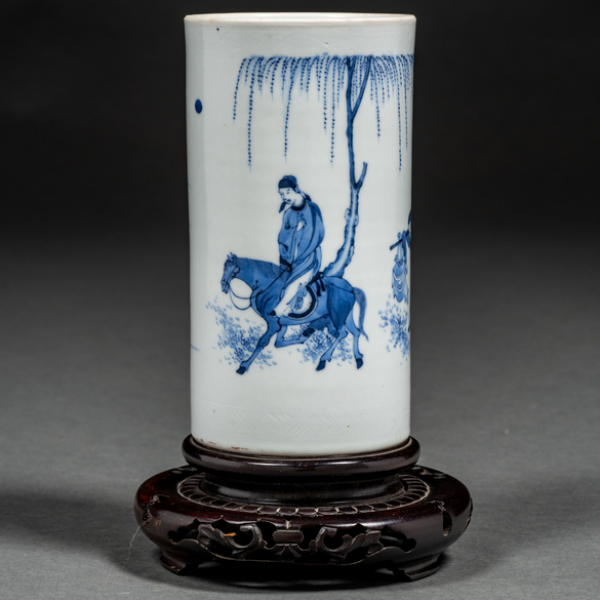 Bote de pinceles en porcelana china azul y blanca del siglo XX.