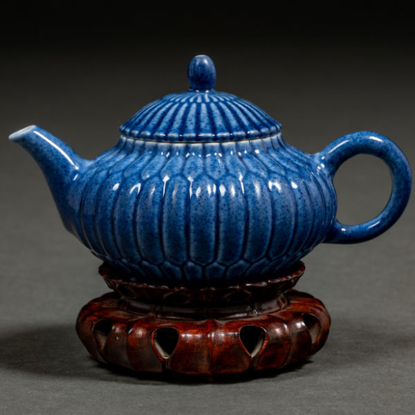 Tetera china en porcelana esmaltada color azul del siglo XX.