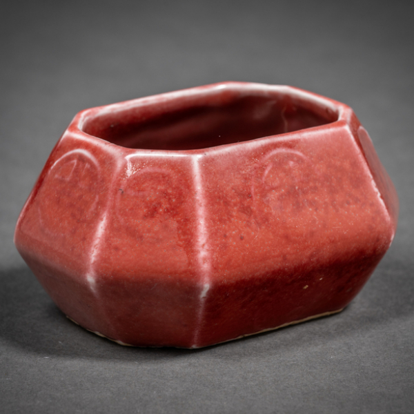 Recipiente poligonal en porelana china color rojo del siglo XIX.