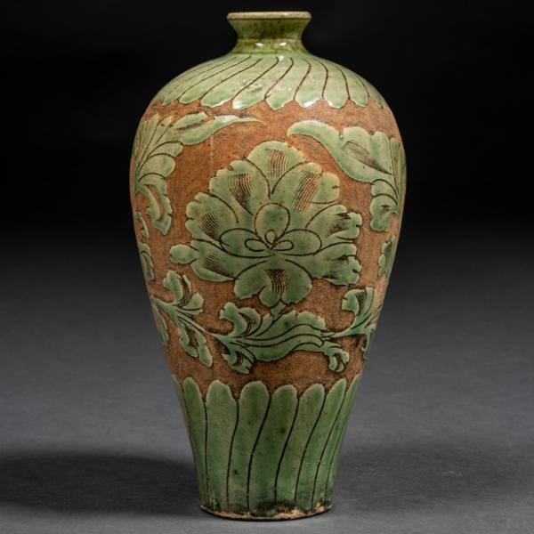 Jarrón en cerámica de celadón color verde del siglo XIX.