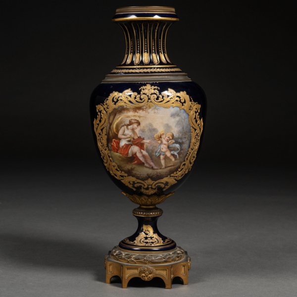 Jarrón en porcelana francesa Sévres en color azul cobalto del siglo XIX