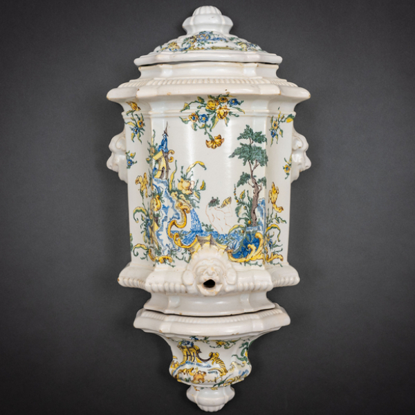 Aguamanil en cerámica de Alcora serie rocalla (1760-1780).