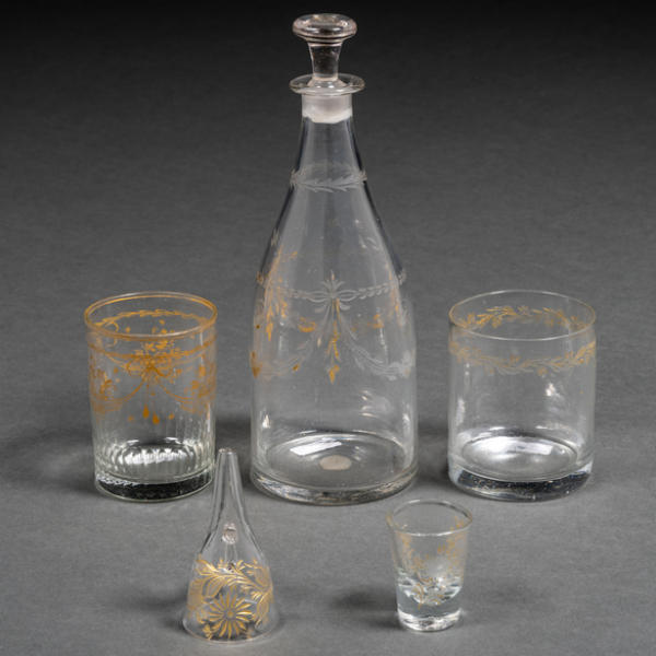 Conjunto de cinco piezas en cristal de la Granja del siglo XVIII-XIX