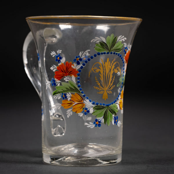 Vaso en cristal traslúcido con esmalte de flores en cristal de la Real fábrica de cristales de la Granja de finales del siglo XVIII-XIX