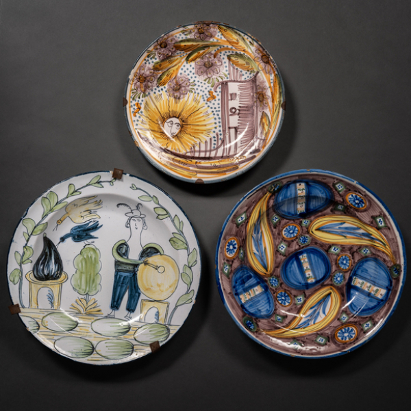 Conjunto de tres platos en cerámica de Ribesalbes del siglo XIX