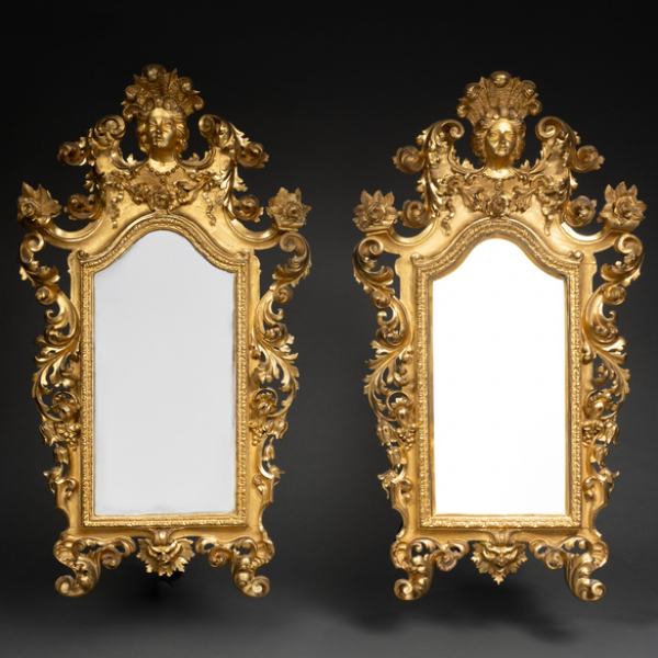 Conjunto de dos cornucopias francesas en madera tallada estucada y dorada del siglo XIX