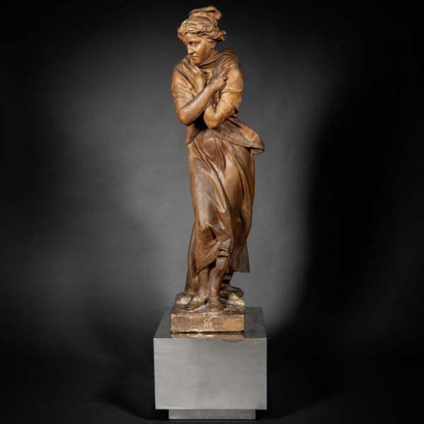 Dama clásica de la antigüedad" Monumental escultura de bulto redondo en terracota Grand Tour del siglo XIX