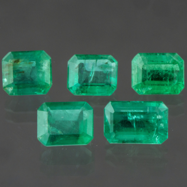 Conjunto de 7 Esmeraldas talla Esmeralda:5,88mm x 8,29mm x 3,88 mm. Peso: 2,17 gr.