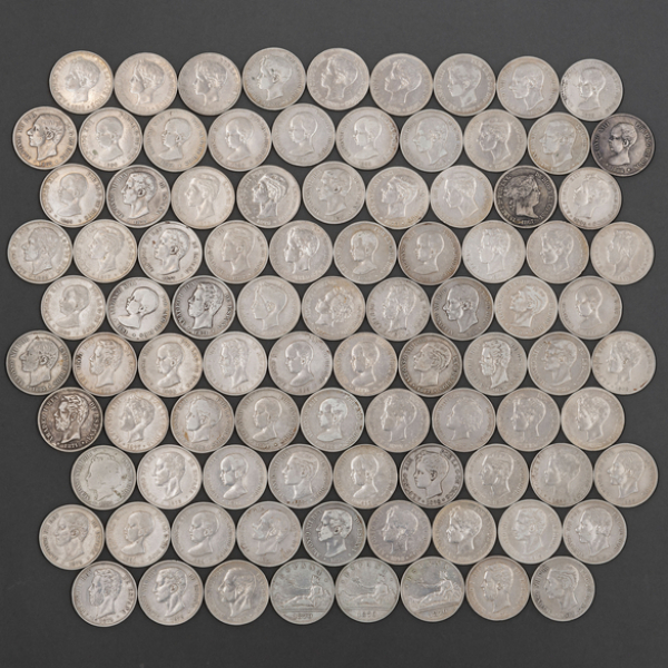 Compuesto por 35 Monedas de Alfonso XII, 42 Monedas de Alfonso XIII, 10 Monedas de Amadeo I.