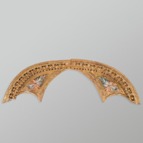 Tímpano compuesto por dos fragmentos en madera tallada y policromada. Trabajo Española, Siglo XVIII