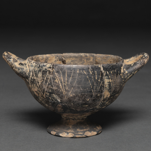 Antigua copa de Vino con dos asas en tierra negra, posiblemente romana.