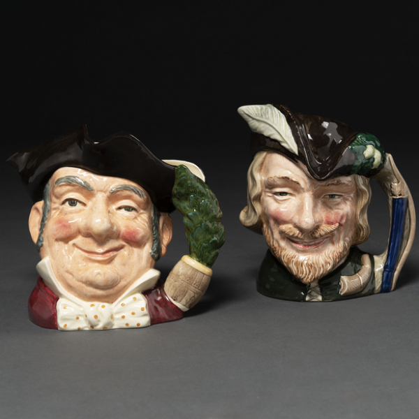 "Mine Host" y "Robin Hood" Conjunto de dos jarras de cerveza Royal Daltón de los años 1957 y 1959.