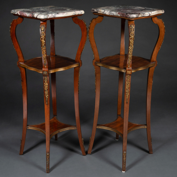 Pareja de mesillas altas estilo Luís XV en madera de caoba. Trabajo Francés, Siglo XIX-XX