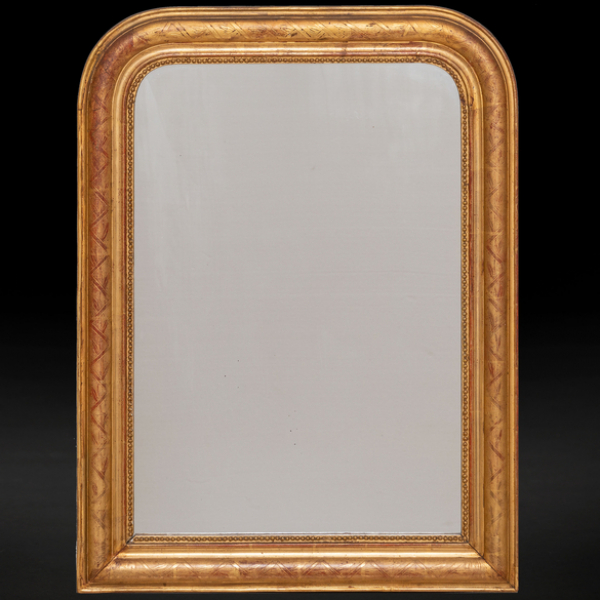 Bonito espejo de pared en forma de medio punto en madera tallada y dorada. Finales del siglo XIX-XX