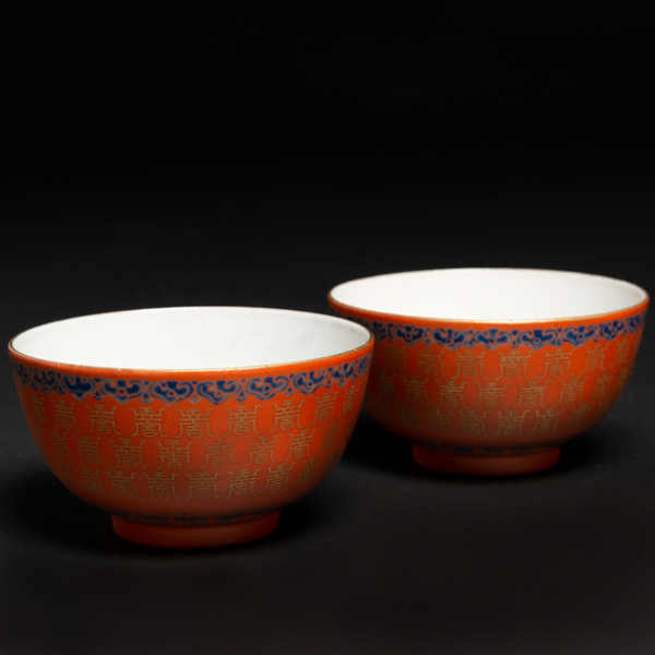 Pareja de bowls en porcelana China. Trabajo Chino, Siglo XIX-XX.
