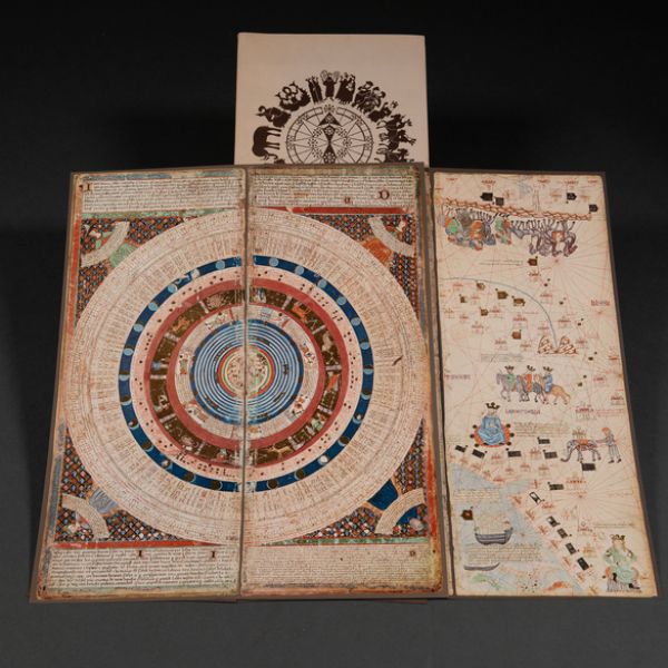 Compuesto por 6 paneles y estudio del atlas con una introducción sobre la obra. El atlas original se conserva en la Biblioteca Nacional de Francia, es la obra más destacada de la Cartografía naútica medieval.