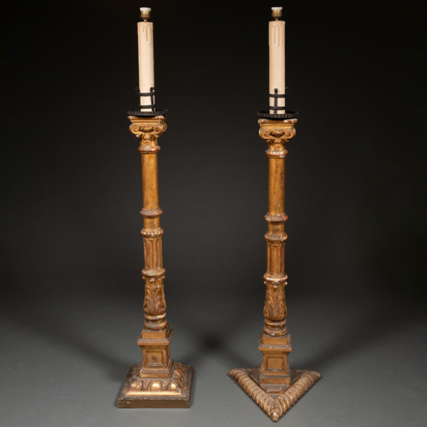 Pareja de columnas en madera tallada y dorada. Trabajo Español, Siglo XVIII