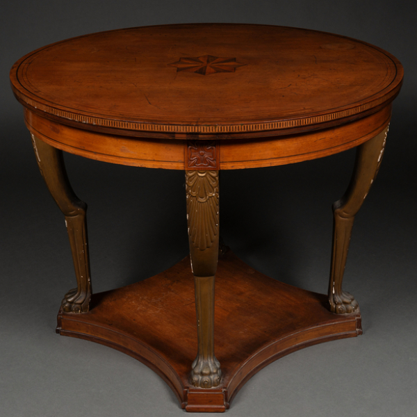 Mesa de centro estilo Neoclásico en madera de limoncillo y madera frutal.Siglo XIX-XX