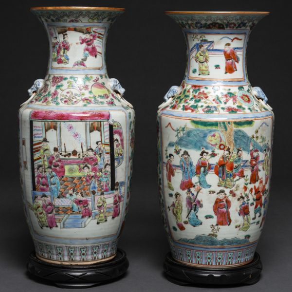 Pareja de jarrones chinos en porcelana familia rosa. Trabajo Chino, Siglo XIX