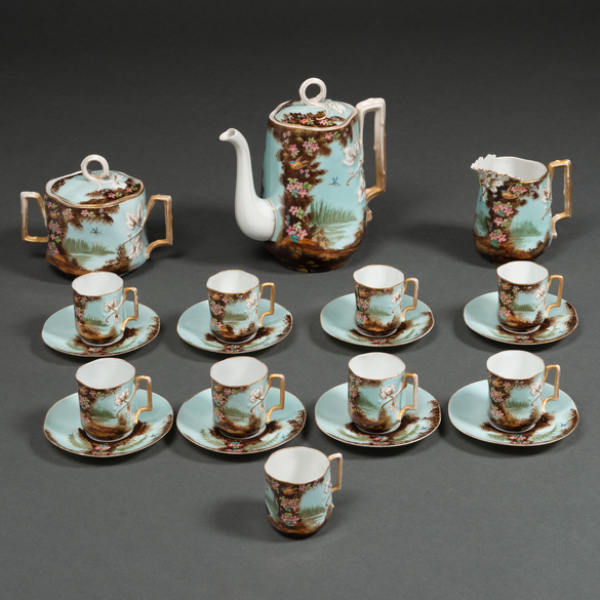Juego de café de ocho servicios en porcelana francesa de finales del siglo XIX-XX