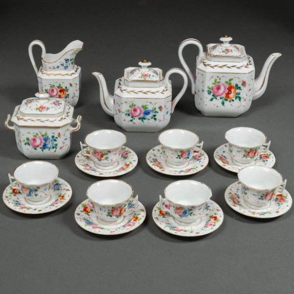 Juego de café de siete servicios en porcelana de Pasajes(1858-1910). Circa 1880