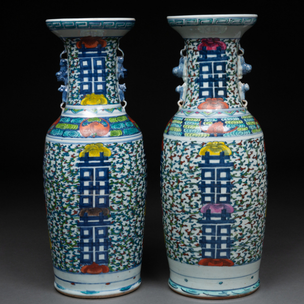 Pareja de jarrones en porcelana china azul y blanca. Trabajo Chino, Siglo XIX