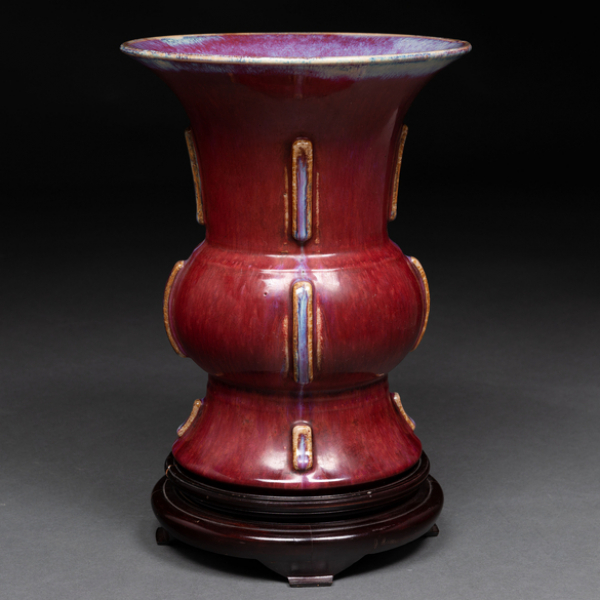 Jarrón chino en forma de trompeta en porcelana china flambé. Trabajo Chino, Siglo XIX